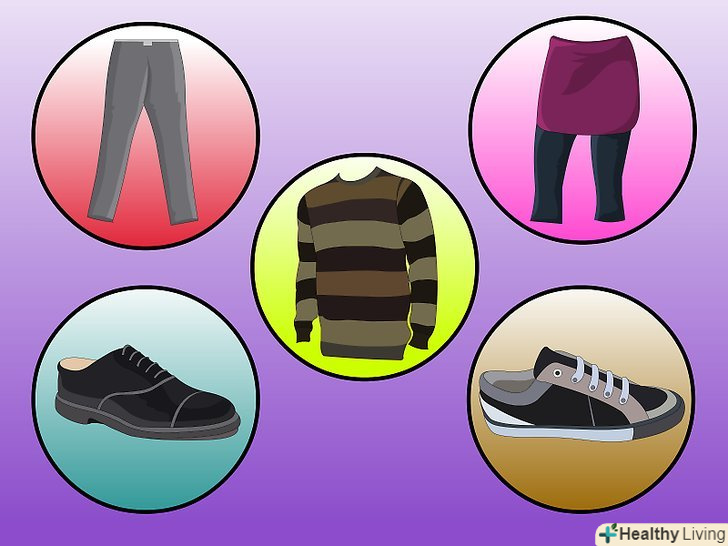 - Упакуйте не менше чотирьох базових речей (Штани, Штани «капрі», спідницю, шорти), шість переметів верхнього одягу, що поєднуються хоча б з трьома базовими речами. Візьміть з собою три шари теплого одягу (Светр, кардиган, піджак спортивного крою, утеплений верх і так далі), одне плаття (для жінок) і чотири пари взуття (три з них для щоденного використання і одна для роботи).