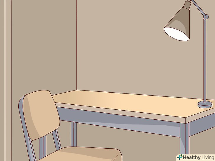 Виберіть зручне місце для навчання.виберіть зручне місце, в якому вас ніхто і ніщо не потривожить. Також буде потрібно зручне крісло, стіл, хороше освітлення і всі необхідні навчальні матеріали.[7]