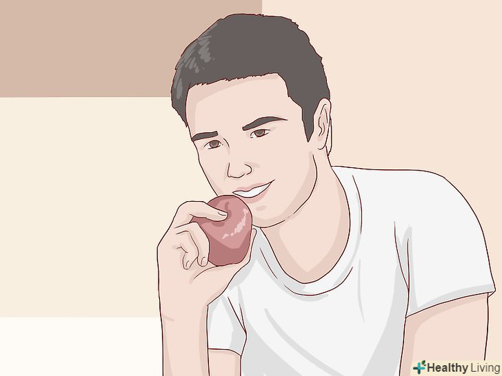 Правильно харчуйтеся.вживайте в їжу продукти, багаті клітковиною і вуглеводами. Вчені вважають, що вуглеводи допомагають мозку виробляти більше серотоніну — гормону, який дозволяє людині розслабитися. Велика кількість клітковини корисно для правильної роботи організму. Фрукти та овочі містять велику кількість антиоксидантів і зміцнюють імунну систему. Плоди цитрусових багаті вітаміном C. Жолудева гарбуз і морква-це першокласні джерела бета-каротину. Збалансований раціон допоможе вам ефективніше поєднувати роботу і навчання.[19]- Відмовтеся від жирних продуктів, надмірної кількості кофеїну і солодощів. М'ясо і сири містять велику кількість жиру, який згущує кров і викликає млявість. Кофеїн може здаватися необхідністю, але споживайте його розумно без шкоди для режиму сну. Нарешті, цукор-це простий вуглевод, який моментально заряджає енергією, але незабаром після цього настає занепад сил. Віддавайте перевагу складним вуглеводам на зразок макаронних виробів, квасолі і сочевиці.[20]