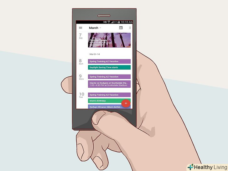 Використовуйте смартфон.більшість смартфонів мають вбудовані календар і додаток зі списками справ. Пристрої Apple і Google можна синхронізувати з ноутбуками і настільними комп'ютерами, щоб переглядати розклад на різних пристроях. Якщо додати нову подію, наприклад домашнє завдання, в календар на смартфоні, інформація також буде доступна на комп'ютері і планшеті.[1]