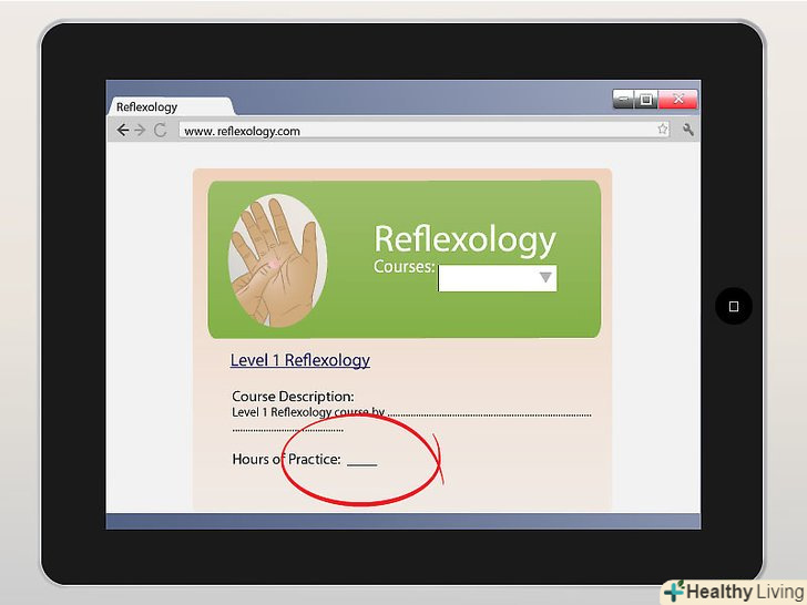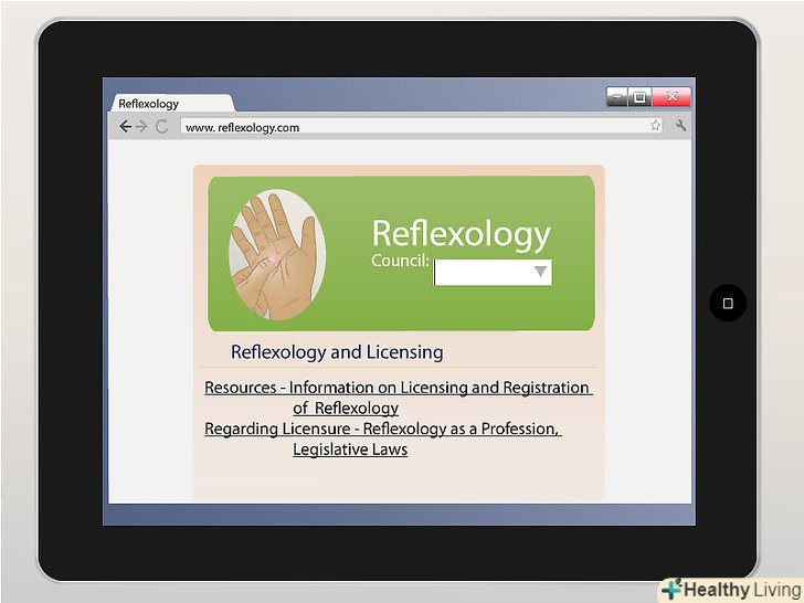 Досліджуйте область, де ви хотіли б практикувати рефлексологію.у деяких місцях взагалі не вимагають сертифікацій або ліцензій, а інші навпаки, настійно рекомендують 1000 годин практики і здачу письмового іспиту. Важливо зрозуміти і виконати вимоги, тоді ви зможете практикувати рефлексологію в області (ях), поруч з вашим будинком.