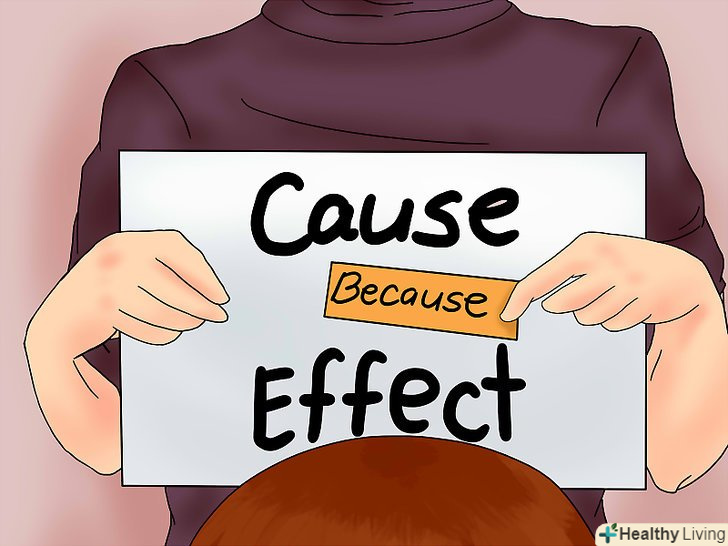 Використовуйте фразу "тому що".відтворюйте відносини між причиною і наслідком, використовуючи фразу "тому що" в спілкуванні. Це дуже допомагає багатьом дітям краще усвідомити поняття. Так, наприклад, ви говорите:» твої туфлі брудні тому, що ти вступив в бруд «або»вдома холодно тому, що ми залишили вікна відкритими".