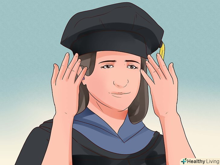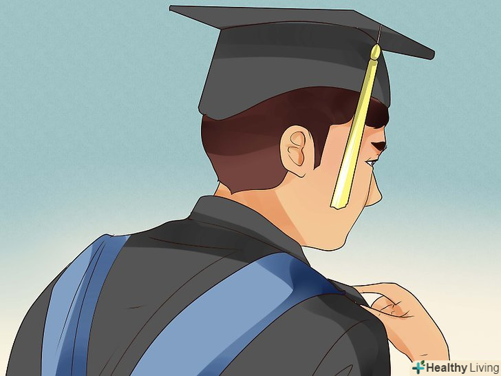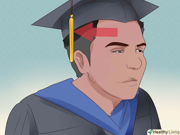 Перевірте, щоб пензлик головного убору була праворуч.у бакалавра, магістра або доктора наук, пензлик на головному уборі завжди повинна бути праворуч. Ви повинні прийти на церемонію в головному уборі з пензликом справа, а після урочистого присвоєння ступеня поміняти положення на ліву сторону.[13]