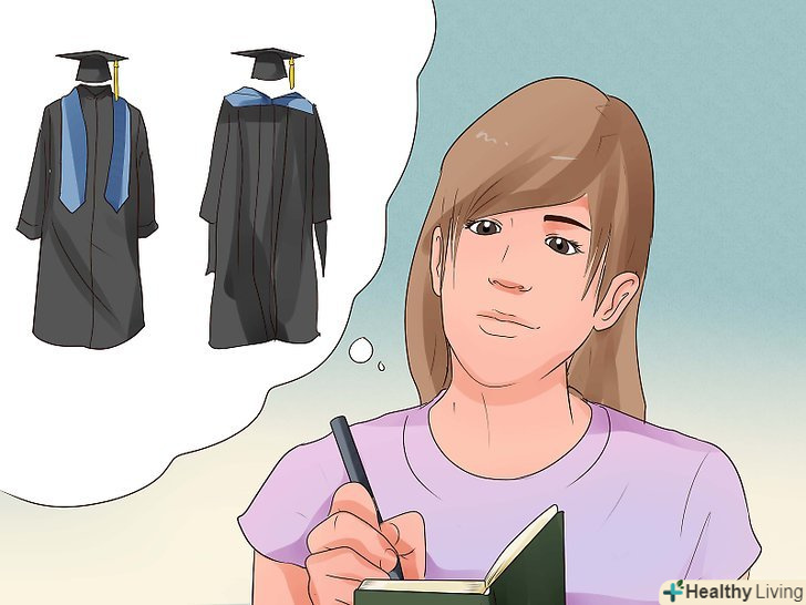 Зверніть увагу на колір підкладки своєї накидки.хоча для кожної науці існують стандартні кольори (наприклад, зелений для медицини, темно-синій для філософії, і фіолетовий для юриспруденції), навчальний заклад вибирає колір для кожної дисципліни самостійно.[7]- Колір, обраний для вашого наукового напрямку, послужить окантовкою для накидки. На накидках для магістрів і докторів кольорові атласні елементи будуть розміщуватися на задній стороні накидки, за оксамитовою смугою.