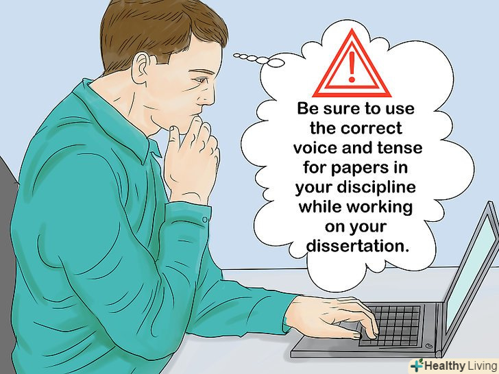 Зверніть увагу на стиль мовлення та граматичні часи.використовуйте той стиль мовлення та граматичний час, який передбачено вашою дисципліною при написанні дисертації. Перевірка і редагування тексту на стиль мови і граматичні часи — це неймовірно важка і вимагає часу завдання, тому краще відразу дотримуватися встановлених правил. Уточніть у вашого наукового керівника, якого формату необхідно дотримуватися, і зверніть увагу на ці деталі під час написання. Крім того, переконайтеся, що стиль мови не змінюється посеред тексту без вагомої причини.