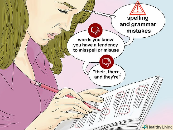 Для початку повністю прочитайте роботу.по завершенні роботи прочитайте її. Під час першого прочитання зверніть увагу на наявність орфографічних і граматичних помилок. Вони будуть відволікати і зупиняти потік думок під час аналізу змісту тексту.- Складіть список слів, в яких ви найчастіше робите помилки або які ви неправильно використовуєте. У більшості людей є принаймні кілька таких слів. Коли ви закінчите писати, ви можете зробити пошук по документу, щоб знайти ці слова і виправити їх.