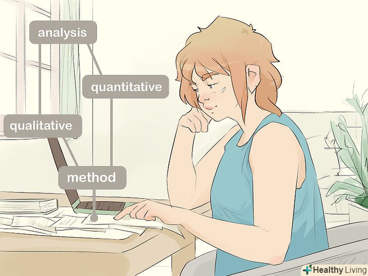 Опишіть, як ви аналізували результати.Ваш аналіз головним чином залежить від того, використовували ви якісний або кількісний метод, або обидва. Якщо ви використовували кількісний підхід, швидше за все, ви будете використовувати Статистичний аналіз. При якісному підході вкажіть, яку теорію або філософію ви використовували.[12]- Залежно від питань, поставлених у вашому дослідженні, ви можете використовувати поєднання кількісного та якісного аналізу — точно так само, як ви можете використовувати обидва підходи. Наприклад, можна виконати Статистичний аналіз, а потім інтерпретувати цю статистику через призму певної теорії.