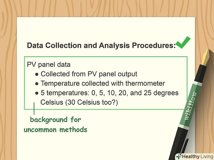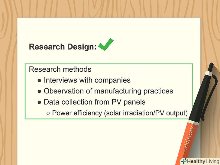 - Детально обговоріть ваші плани з науковим керівником до того, як зупиніться на конкретному методі. Це може допомогти вам визначити можливі недоліки плану вашого дослідження.[18]