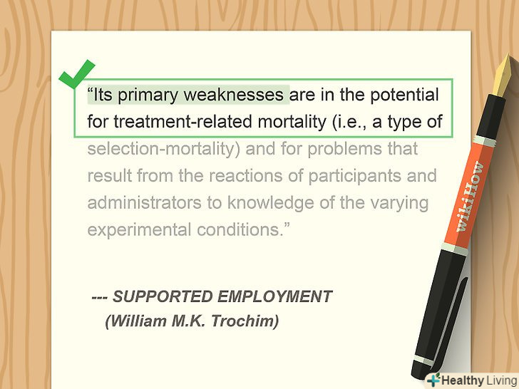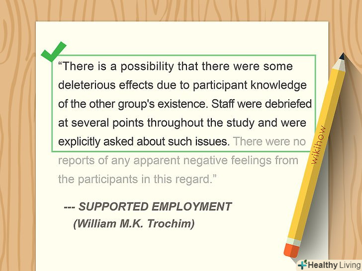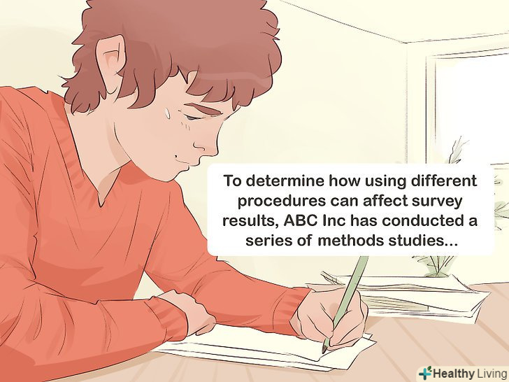 Цитуйте всі джерела, на яких ви засновували вибір методики. якщо ви використовували чиїсь роботи, щоб розробити або застосувати свою методику, опишіть ці роботи і поясніть, що з них ви використовували в своїй роботі або як ваша робота побудована на них.[7]- Наприклад, припустимо, що ви проводите соціологічне опитування і використовували кілька інших дослідницьких робіт, щоб розробити питання для вашого опитування. У цьому випадку ви повинні згадати ці джерела.
