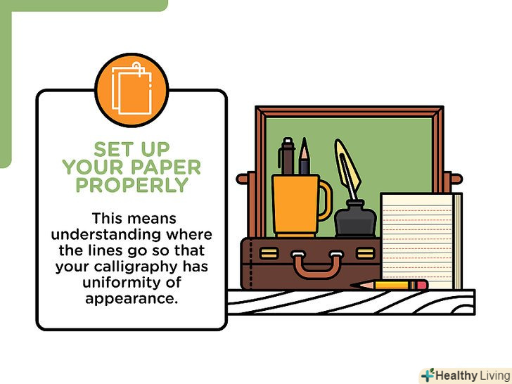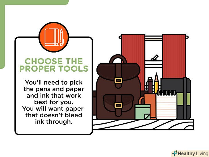 Виберіть правильні письмові приналежності.важливо переконатися, щоб лінії на листі виглядали так, як потрібно. Для цього необхідно підібрати Письмове приладдя, які підходять саме вам.- Письмове приладдя, яке підходить для каліграфії, - це маркери, автоматичні ручки, пір'яні ручки з металевим або пташиним пером.
