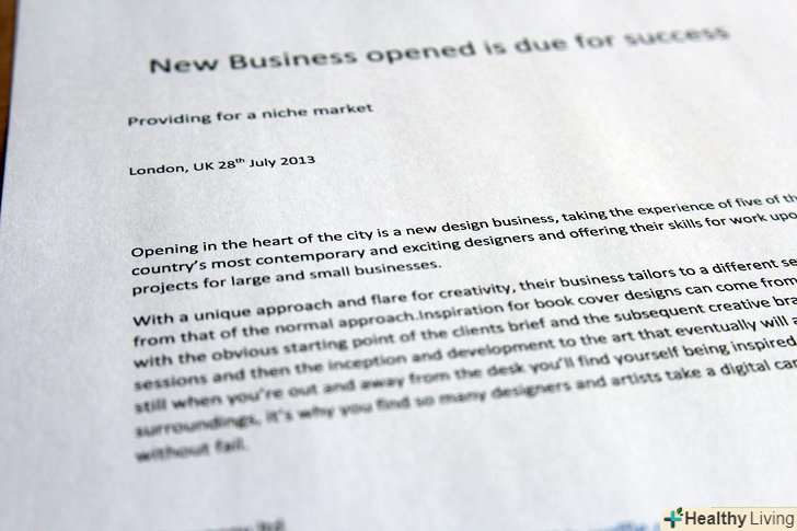 - Якщо можливо, скористайтеся фірмовим бланком вашої компанії. Це зв'яже образ вашої компанії з вашим прес-релізом і надасть йому більш професійний вигляд. Або помістіть логотип вашої компанії на початку прес-релізу, щоб його можна було легко ідентифікувати з вашим бізнесом або організацією.