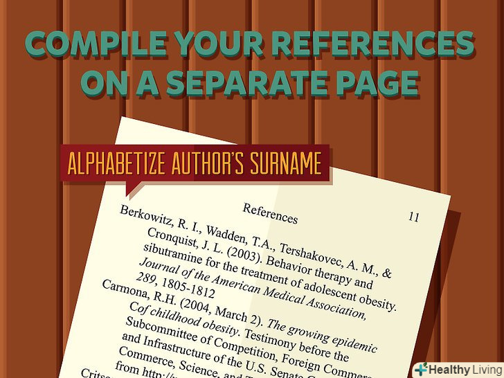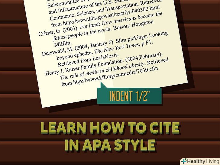 Складіть список використаних джерел, і помістіть його на новій сторінці після основного тексту.надрукуйте вгорі слово» Література", вирівнювання по центру. Надрукуйте список авторів в алфавітному порядку. Для джерел без вказівки авторів використовуйте сортування по першій букві заголовка. У текстових редакторах з вбудованими шаблонами стилів АПА форматування списку літератури можна виконати автоматично.- Вставляючи в текст цитати, дотримуйтеся стилю "автор-дата". Для цього вставляється прізвище автора і Рік публікації, наприклад (Smith, 2010), а повна назва роботи включається в список літератури.