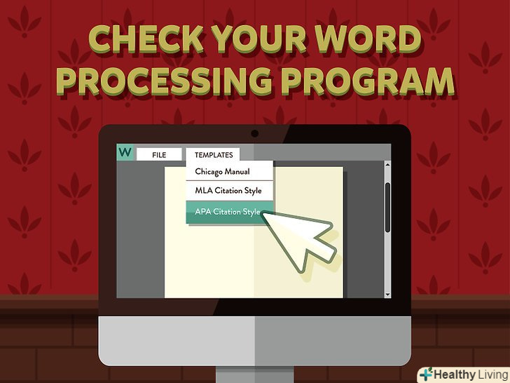 Текстовий редактор може містити шаблони і керівництва по стилям АПА.у програмах Microsoft Word, WordPerfect і EasyOffice є можливість автоматичного форматування бібліографій, виносок і цитат відповідно до вимог АПА.- Якщо немає впевненості в наявності вбудованих шаблонів, краще не ризикувати і відформатувати текст вручну.
