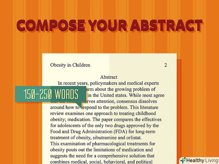 Складіть анотацію. вона повинна починатися з нової сторінки і містити 150-250 слів. Це короткий опис вашої роботи, в якому вказується мета, методологія, результати та висновки. Анотація-це окрема сторінка, що має назву "Анотація" У верхній частині сторінки (вирівнювання по центру). Курсив, підкреслення або жирний шрифт не використовується.[3]- Не забудьте про верхньому колонтитулі-це коротка назва роботи і номер сторінки.