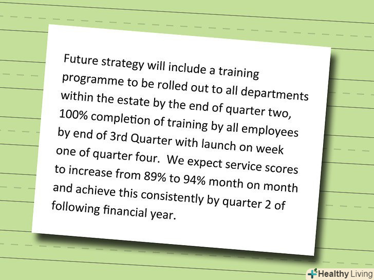 Завершіть свій звіт пропозицією стратегії розвитку на найближче майбутнє.- Включіть деталі щодо термінів і особливих цілей, таких як рівень прибутку і частка ринку, які ви маєте намір досягти.