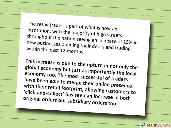 Зберіть разом всі необхідні дані, використовуючи перераховані вище джерела.- Зробіть особливу позначку про розмір щорічного прибутку в обраній індустрії, числі діючих компаній, статистикою зайнятих в даній індустрії працівників і т.д. якщо це буде доречно, пошукайте також статистику щодо розміру клієнтської бази і купівельних трендів.