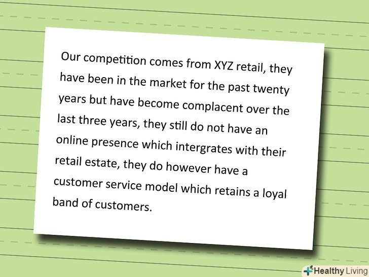 Опишіть, яке місце займаєте ви в даній індустрії.- Включіть статистичну інформацію про ваш бізнес і чесно Розкрийте всі переваги і недоліки, з якими стикається ваша компанія.