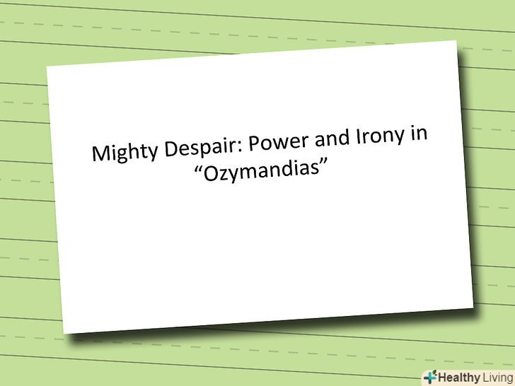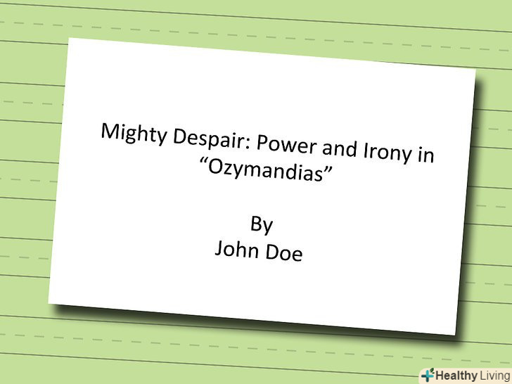 Выравняйте заголовок по центру.він повинен знаходитися строго по центру рядка і відступати на одну третину від верхнього краю листа.[1]- Назва вашої роботи має бути інформативним, але в той же час і креативним.
