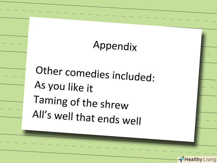 Заголовок "додаток" слід вирівняти по центру. не виділяйте його курсивом, жирним або підкресленим шрифтом.- Якщо ви включаєте кілька додатків, назвіть їх "додаток A, ""додаток б," і так далі.