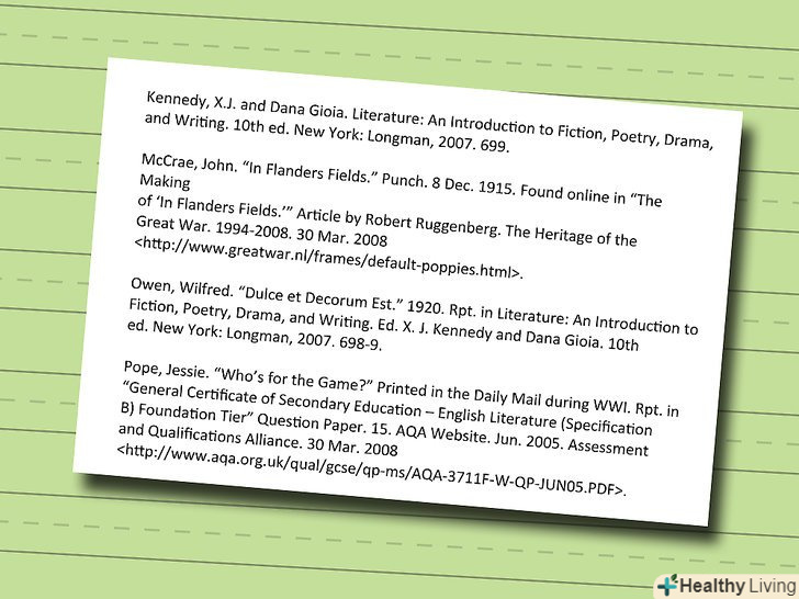 Вказуйте номер фігури при включенні таблиць або зображень в текст. [3] коли ви включаєте в текст таблицю або іншу графіку в форматі MLA, слід вирівняти фігуру по центру, вказати її номер, назву та інформацію про джерело.- Для фотографій та ілюстрацій варто використовувати " фіг. 1, "" фіг. 2, " і так далі. Використовуйте " таблиць 1," "таблиць 2" і т.д. для таблиць і графіків.