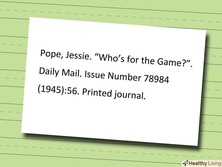 Цитування статті в журналі.базовий формат для цитування стандартної журнальної статті включає в себе ім'я автора, назву статті, назву журналу, інформацію про випуск і вид публікації.- Вкажіть ім'я автора у форматіпрізвище, Ім'я". Поставте крапку.
