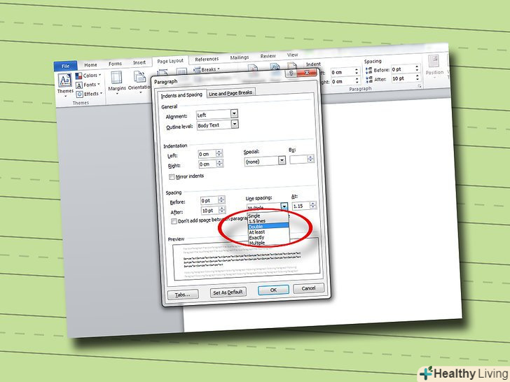 Встановіть подвійний міжрядковий інтервал.Ваша робота повинна бути написана з подвійним міжрядковим інтервалом з самої першої сторінки. Пам'ятайте, що немає необхідності додавати додатковий інтервал між абзацами.- У більшості текстових редакторів, ви можете поміняти інтервал між рядками, Зайшовши в Налаштування "Розмітка сторінки", які зазвичай знаходяться в меню "Файл". У діалоговому вікні ви повинні побачити кнопку "Відступи і інтервали", пройшовши по якій, вам слід вибрати подвійний інтервал або "2.0".