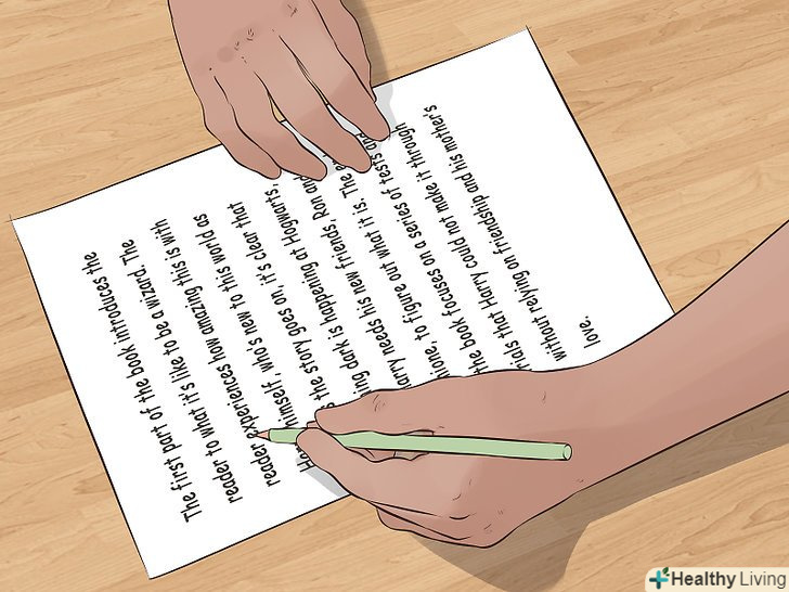 Перевірте текст на наявність помилок.переконайтеся, що всі слова написані правильно. Читання вголос краще допоможе помітити граматичні помилки і неправильно розставлені розділові знаки. Перевірте загальну кількість слів.[10]- У цьому випадку, якщо ви пишете короткий виклад для книжкового клубу або тільки для себе, редагування може бути і не настільки важливим, але все ж у вашій анотації повинен бути сенс. Перечитуючи її, ви зможете зрозуміти, наскільки структуровано і зрозуміло ваше виклад.