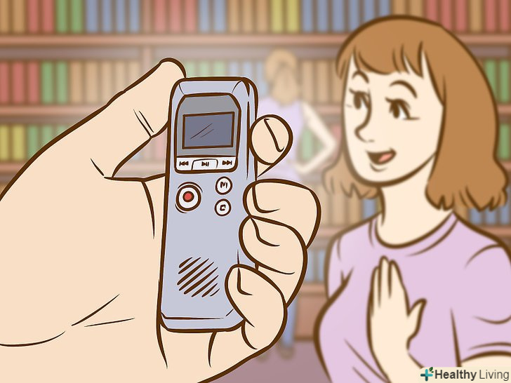 Запишіть розмову на диктофон.використовуйте звукозаписний пристрій, але не забувайте робити записи від руки. У пристрої завжди може розрядитися акумулятор і закінчитися пам'ять для запису.- Отримайте згоду співрозмовника на запис розмови. Якщо ви маєте намір використовувати цей запис не тільки для роботи над текстом статті (наприклад, створити подкаст на підтримку вашого нарису), то необхідно оповістити людину про це і отримати його згоду.