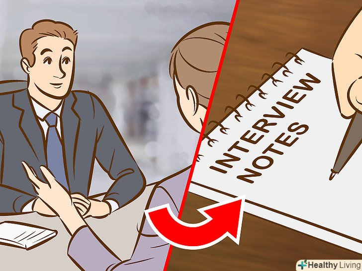 Зробіть нотатки відразу після інтерв'ю.записуйте спостереження і важливі моменти, поки вони ще свіжі в пам'яті. Це можуть бути спостереження про місце, зовнішній вигляд співрозмовника, діях або умінні тримати себе.