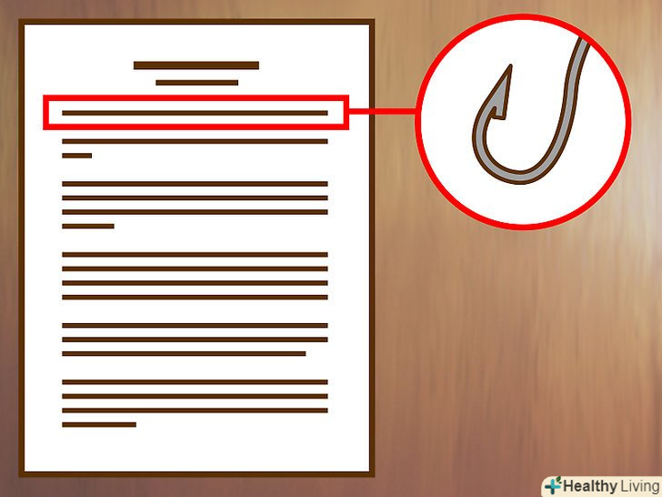 Придумайте інтригуючий початок.перший абзац-це шанс захопити читача і зацікавити історією. Якщо перший абзац буде сухим і нудним, читач втратить інтерес і просто закриє статтю.- Почніть з цікавого факту, цитати або історії з життя.