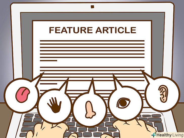 Показуйте, а не пояснюйте.нарис дозволяє описувати людей і події.[3] опишіть обстановку або людину, щоб читач міг сформувати чіткий уявний образ.