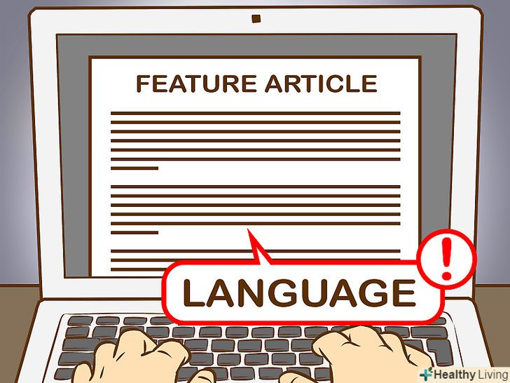 Вибирайте відповідні слова.розгляньте цільову аудиторію статті, щоб відповідати рівню та інтересам читачів. Не слід припускати, що вони знайомі з темою, про яку ви пишете, тому пояснюйте складні деталі. Розшифровуйте скорочення, пояснюйте сленг або жаргонізми доступною мовою. Краще вибрати для статті розмовний, а не строгий науковий стиль.[4]