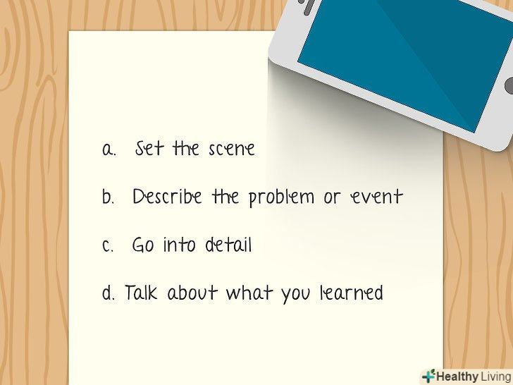 - Зробіть начерк основних частин вашої розповіді. Раз ви воскрешаєте події у власній пам'яті, то напевно у вас в голові буде мільйон думок, які ще треба якось упорядкувати. За допомогою начерку це цілком можна зробити.
