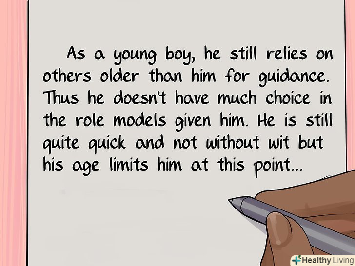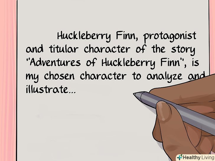 Виберіть свого персонажа. для виконання завдання з аналізу персонажа в школі, вам може бути запропоновано описати будь-якої літературний персонаж. Але якщо ви можете вибирати, переконайтеся, що ви схильні розглядати тільки тих героїв, які грають динамічні ролі в творі. Тьмяні і нудні персонажі (одномірні, хтось тільки «хороший» або тільки «поганий», які не розглядають ніяких складних мотивацій) не є підходящим вибором для аналізу.[1]- Наприклад, якщо ви, читаєте книгу Марка Твена «Гекельберрі Фінн», ви могли б вибрати Гека або побіжного раба Джима, так як вони динамічні персонажі, які проявляють широкий діапазон емоцій, і які часто діють непередбачувано, і своїми діями рухають вперед сюжет твору.