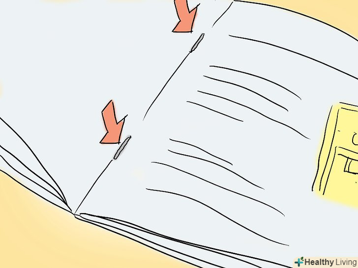 Подумайте над типом палітурки.якщо у вашому керівництві користувача більше 4-х сторінок, вам буде потрібно палітурка. Документи для внутрішнього користування зазвичай скріплюють степлером в кутку, але якщо ви будете вкладати своє керівництво в коробку з товаром, вам потрібно буде підійти до цього питання більш відповідально. Є три типи палітурки:- Скріплення скобою. Цей тип підходить для брошур розмірами 21x 27.5 см, 21x35 см або 11 x 27.5x42.5 см.більшість недорогих інструкцій з експлуатації, які складаються з 48 сторінок і менше, переплітаються таким чином.