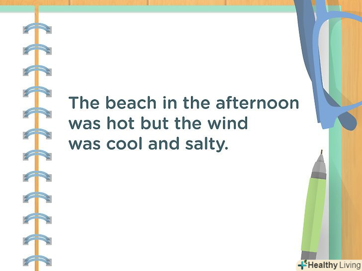 Використовуйте мову почуттів і вносите деталі.Оживіть своїх персонажів, зробивши акцент на тому, що вони бачать, чують, відчувають, а також які запахи відчувають, що пробують на смак і до чого торкаються. Включіть мову, яка описує почуття, щоб аудиторія залишалася залученою в історію. [8]- Наприклад, можна описати обстановку як «галасливу і завзяту» або «жарку і задушливу».