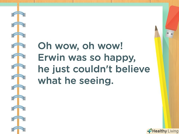 - Крім того, можна задіяти звуки, такі як» бряк«,» бум«,» шмяк «і» фьють", щоб зробити історію цікавою для читачів.