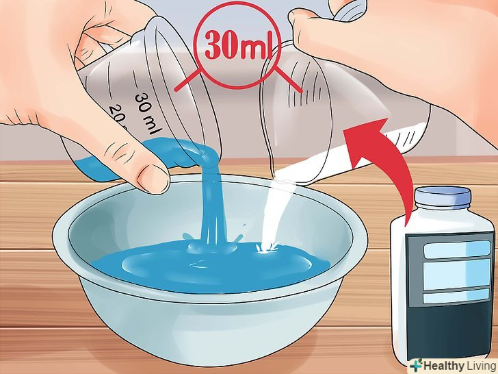 Влийте гумову суміш в оцет.в окрему скляну або пластикову миску, налийте 30 мл дистильованого білого оцту. Залийте суміш гуми і води в цей оцет і ретельно змішайте.- Якщо ви збільшуєте або зменшуєте використовувану кількість гуми і води, ви повинні також збільшити або зменшити кількість оцту. Пропорція гуми, води і оцту повинна бути 1:1:1.