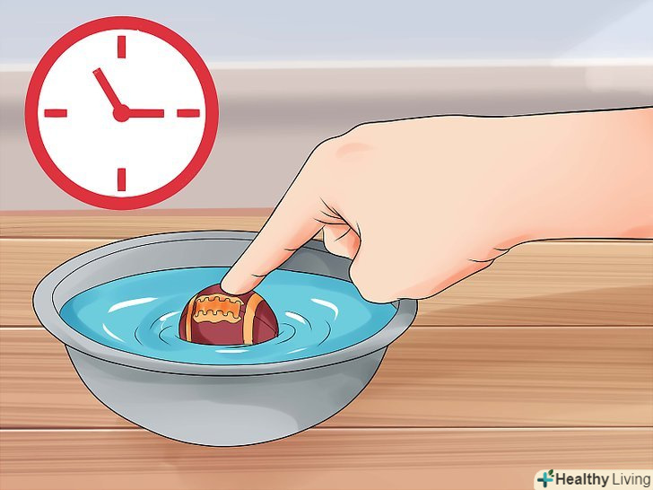 Занурте ластик у воду.заповніть невелику миску на третину холодною водою і покладіть в неї ластик. Залиште його у воді на кілька хвилин.- У той час як ластик занурюється у воду, ви повинні помітити бульбашки. Притисніть пальцями і видавіть ці видимі бульбашки.