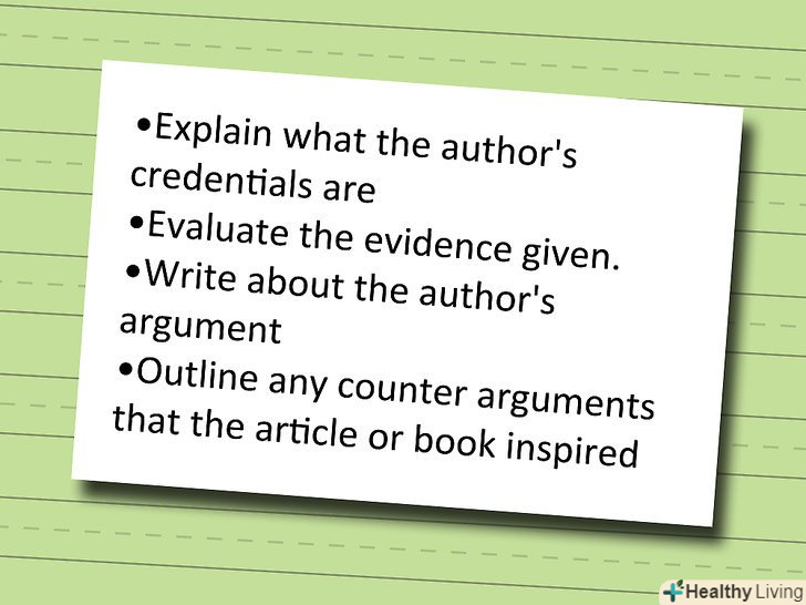 Перегляньте основну частину роботи. ви повинні написати мінімум три основних параграфа і викласти в них наступне:- Поясніть повноваження автора. Проявіть свою думку з того приводу, чи можна довіряти автору в плані аргументації. Наприклад, автор може різко перейти на іншу тему, яка не стосується його компетентності, або ставить себе, як передового експерта в даній роботі.