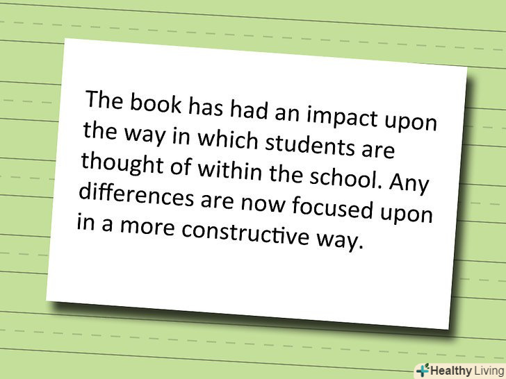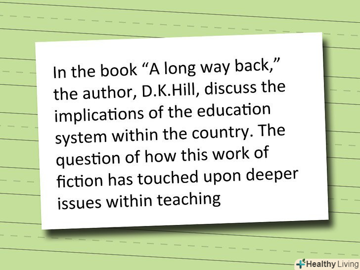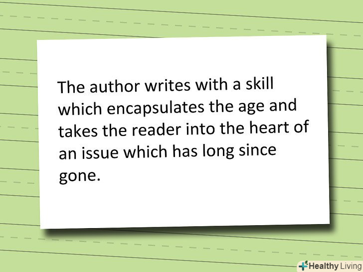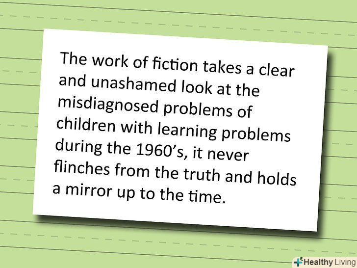 Потім зробіть невелике резюмування твору в цілому.у випадку з опублікованою роботою, ви повинні закласти фундамент для критичної статті. У випадку з неопублікованою роботою, ви зможете продемонструвати автору, як ви інтерпретували його роботу.