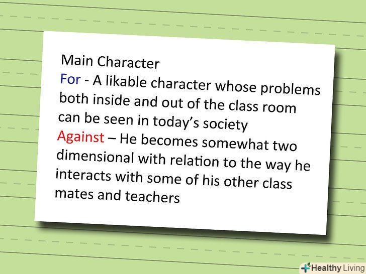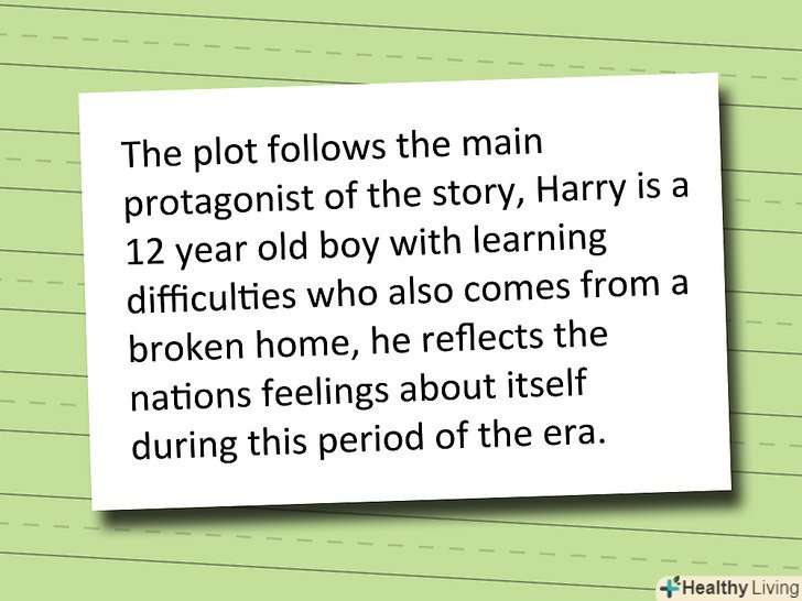 Виконайте аналіз невід'ємних елементів літературного твору, в тому числі сюжету, місця дії, протагоніста, антагоніста і своєї точки зору.- Не обов'язково робити аналіз всіх зазначених елементів. Це потрібно робити тільки тоді, коли подібне було зазначено автором або завданням. Зосередьтеся на найбільш важливих моментах, які кинулися вам в очі в під час початкового і повторного прочитання.