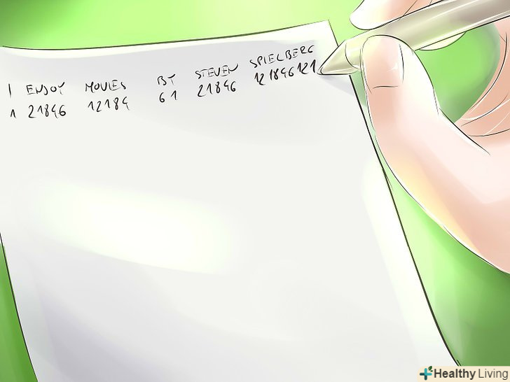 Надайте кожній букві цифру.Уявіть собі повідомлення "мені подобаються фільми Стівена Спілберга". Під повідомлення ви напишіть ваше шестизначне число знову і знову до самого кінця пропозиції: 121 84612184 612184 6121846 121846121.