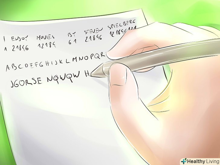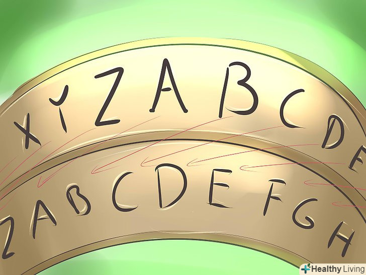 Створіть свій алфавіт шифру.Шифр Цезаря переміщує алфавіт і потім замінює букви їх новим номером по порядку. [2] це робить код більш важким для злому, якщо ви змінюєте розстановку регулярно. Наприклад, 3-х перестановочний шифр буде означати, що А стає Е, Б стає Ю, В стає я і т.д. якщо ви хочете написати «зустрічаємося завтра на станції», то повідомлення буде виглядати «Яопнвфевйоь ееяпне ке опекуее».- Існує багато варіантів зміни порядку алфавіту перед створенням коду. Це робить шифр більш надійним.