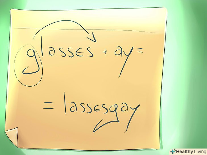 Визначте слова, які починаються з приголосної.якщо є такі, то перенесіть першу букву слова в кінець і додайте «Ай». Якщо на початку слова стоять дві (або більше) приголосних, переставте їх в кінець і додайте «ай».- Наприклад, "труп «стане» уптрай«,» грам «стане» аммграй «і» думка «стане»уптрай".