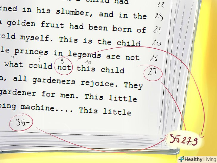 Переведіть слова Вашого повідомлення в цифри.Візьміть перше слово Вашого повідомлення і знайдіть його десь у книзі. Після цього запишіть номер сторінки, номер рядка і номер слова. Напишіть їх разом для заміни потрібного вам слова. Робіть цю операцію для кожного слова. Ви також можете використовувати цей прийом для шифрування фраз, якщо ваша книга коду може надати вам потрібну фразу готовою.- Отже, наприклад, слово на сторінці 105, п'ятий рядок вниз, дванадцяте за рахунком стане 105512, 1055.12 або чимось схожим.