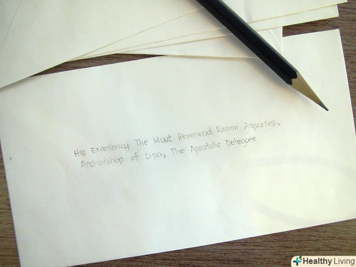 Апостолічний делегат. на конверті напишіть " його Превосвященству преосвященному (ім'я) (прізвище), архієпископу (назва єпархії), апостолічному делегату». У вітанні листа напишіть»дорогий архієпископ".
