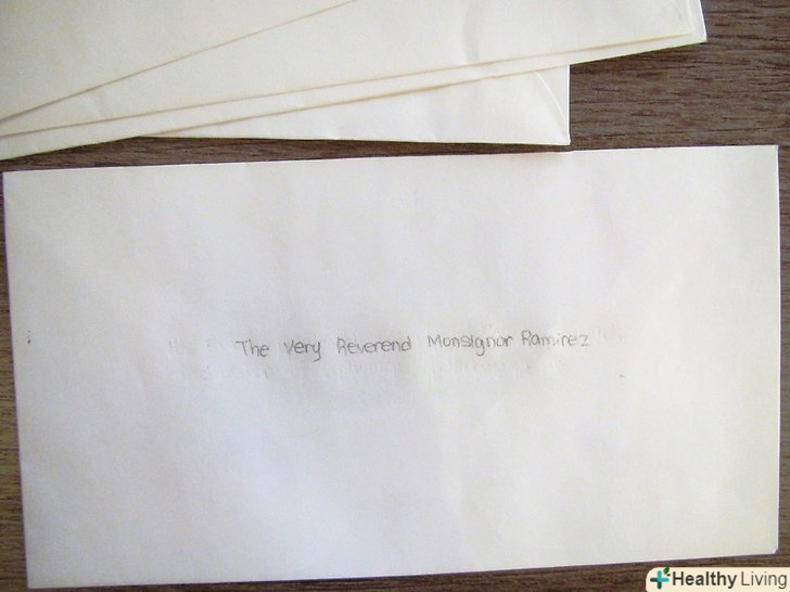 На конверті напишіть " його Високопреподобию монсеньйору (прізвище)» або «його преподобію (ім'я) (прізвище)». у вітанні листа напишіть "Ваше високопреподобие дорогий монсеньйор (прізвище)»або" Преподобний монсеньйор (прізвище)".- На конверті для монсеньйора вищого рангу напишіть " його Преосвященству (ім'я) (прізвище)».