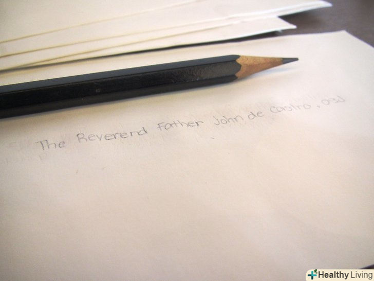На конверті напишіть " Преподобному (ім'я) (прізвище)» або «Преподобному Отцю (ім'я) (прізвище)». у вітанні напишіть "Преподобний отче«,» дорогий отець (прізвище) «або»дорогий отець".- Священик чернечого ордена. На конверті обов'язково напишіть ініціали ордена:»Преподобному (ім'я) (прізвище) (ініціали ордена)". Наприклад « " Преподобному батькові Роберту Джонсу, SJ "(тут SJ – ініціали ордена єзуїтів).