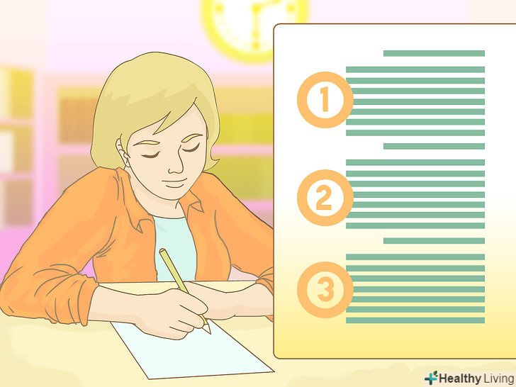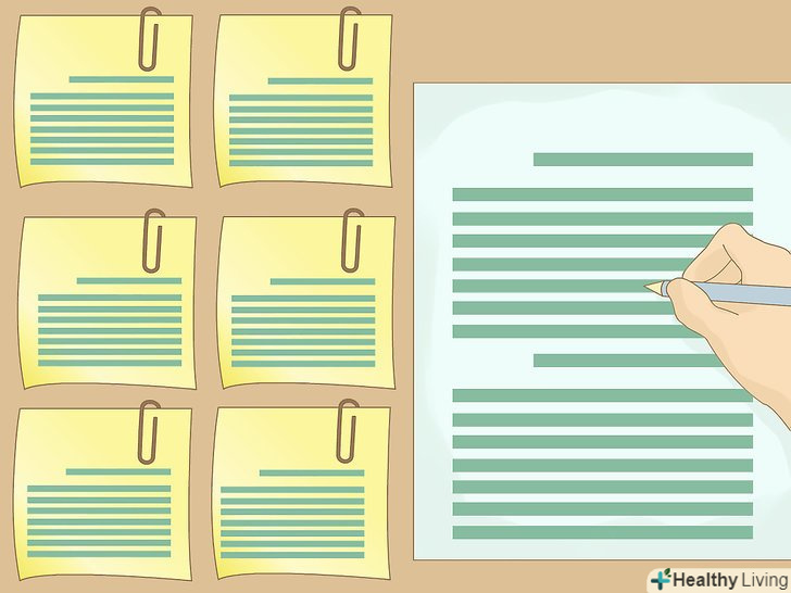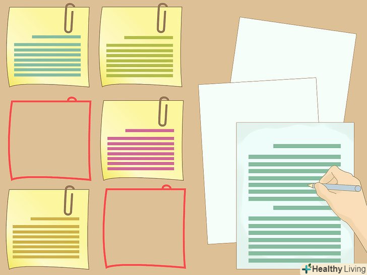 Спробуйте знову залишити тільки головне. дуже часто в міру написання акценти в тексті зміщуються, і це нормально. Так текст стає глибше і цікавіше. Однак через це ваше есе може втратити чіткої структури. Щоб повернути текст до початкового стану, спробуйте виділити ключові думки, щоб зрозуміти, як текст виглядає зараз і яким він повинен бути.[16]- Можна робити це на комп'ютері або на папері.